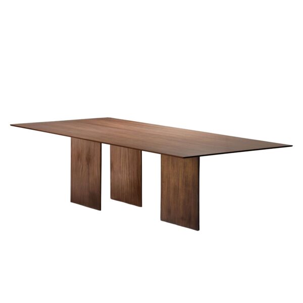 A mesa Fio compreende que o minimalismo é ser sucinto, um desafio que pede consciência e reflexão. Optar pelo que aparentemente é simples é pensar no que valorizamos efetivamente, o encontro com o outro, a natureza, o que há em nós, tanto em conteúdo intelectual como emocional. Abre espaços para o convívio e a interação, pensa o todo de modo sustentável e rejeita os excessos. As bases que a sustentam são estreitas na perspectiva frontal, criando a ilusão de que o móvel em madeira flutua sobre 3 delicados fios.