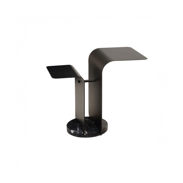 Ringo é uma mesa lateral dupla caracterizada por planos de apoio de diferentes tamanhos, alturas e materiais.