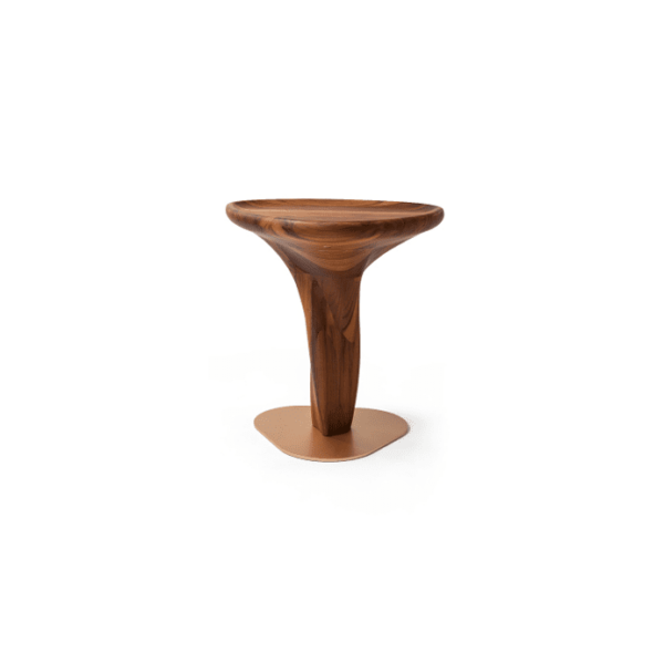 O movimento intenso e giratório realizado pelas correntes de água em padrão circular tornou-se a principal fonte de inspiração da mesa lateral Vórtice. Linhas espirais e curvas orgânicas transmitem movimento ao corpo de madeira maciça.