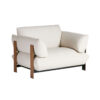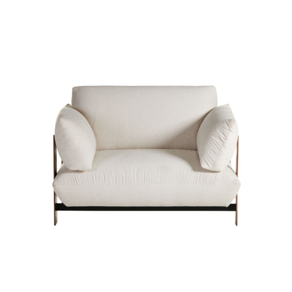A Poltrona Angra tem desenho firme e proporções amplas. O assento profundo e o encosto de linhas retas criam uma sensação de apoio e conforto estável. Um móvel de construção sólida, pensado para espaços que pedem equilíbrio e estrutura.