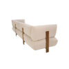 Sua estrutura externa é composta com pés em chapa laminada e em barra chata pintada. A largura do sofá pode ser customizável, permitindo a sua inserção em qualquer ambiente.